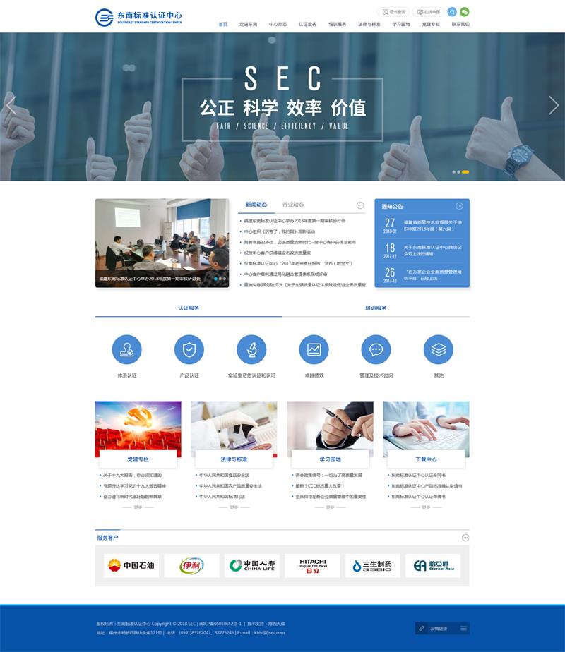 海西天成已第三次為福建東南標(biāo)準(zhǔn)認(rèn)證中心(http://www.fjsec.com)官網(wǎng)進(jìn)行改版服務(wù),此次全新改版后的官網(wǎng)將實(shí)現(xiàn)“全站響應(yīng)式”,還增加了微信公眾號相結(jié)合,訪問方式更加方便。