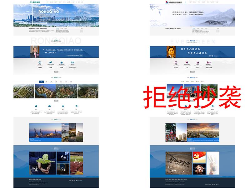 近日,發(fā)現(xiàn)地產(chǎn)企業(yè)官網(wǎng)抄襲我司設(shè)計(jì)制作的"融僑集團(tuán)"官網(wǎng);海西天成每逢設(shè)計(jì)作品更新,必將迎來(lái)抄襲,因此,我們真誠(chéng)地建議同行“抄風(fēng)格,不復(fù)制”,海西天成愿意“做榜樣,不做幫兇”;希望大家都能提高企業(yè)素質(zhì),提升建站水平,共同維護(hù)行業(yè)秩序。