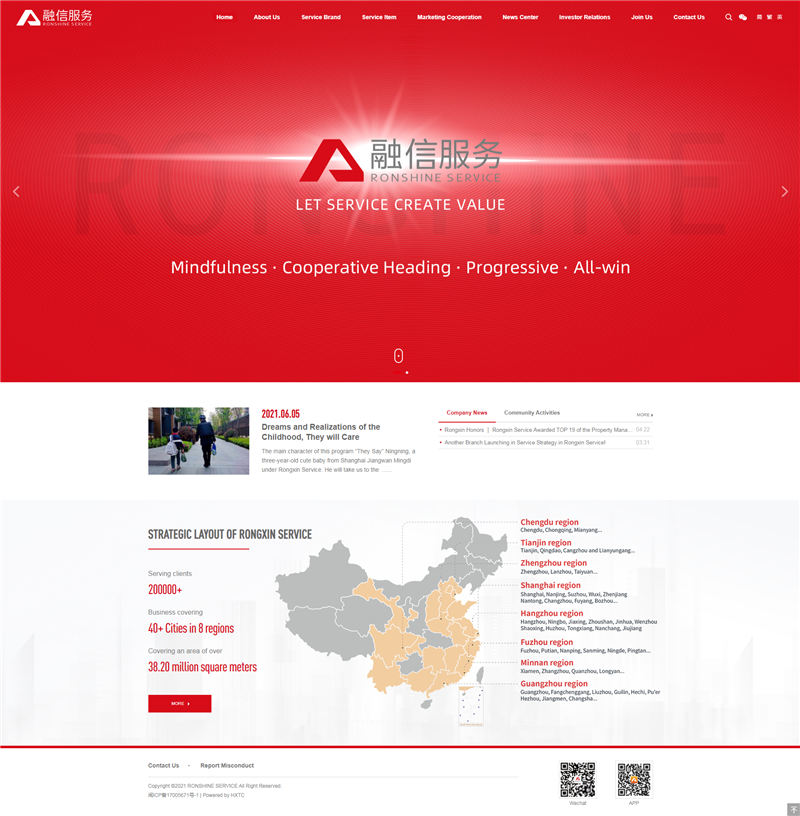 為迎合上市,融信服務(wù)官網(wǎng)(www.rxswy.com)全新改版升級上線,官網(wǎng)通過中、英、繁三種語言向國際資本市場全方位介紹融信服務(wù)的理念、多元布局等;網(wǎng)站采用響應(yīng)式設(shè)計規(guī)劃,自適應(yīng)用戶不同的瀏覽終端。