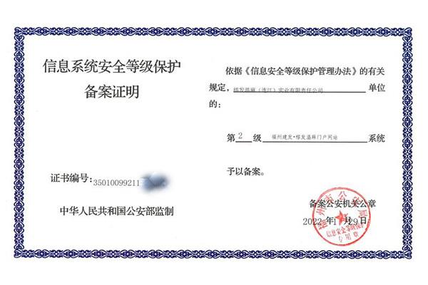 依據(jù)《信息安全等級保護管理辦法》的有關(guān)規(guī)定,榕發(fā)溫麻實業(yè)有限責任公司的第二級“福州建發(fā)·榕發(fā)溫麻門戶網(wǎng)站”系統(tǒng)備案通過。