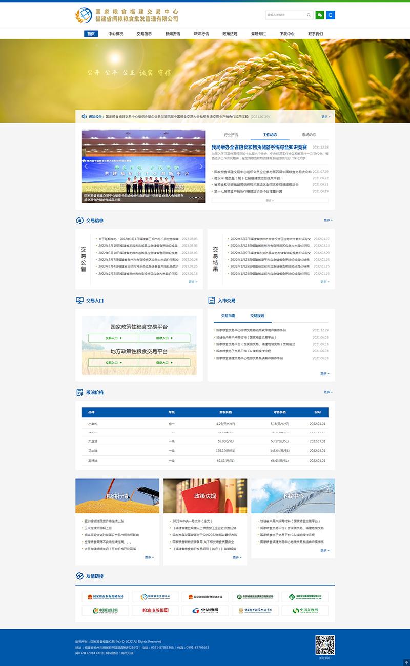 近日,由海西天成承建的國(guó)家糧食福建交易中心門戶網(wǎng)站正式上線,網(wǎng)站以全新的互聯(lián)網(wǎng)形象對(duì)公眾展示,網(wǎng)址為www.fjgrainmarket.com